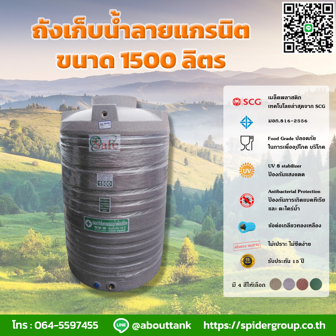 ถังเก็บน้ำลายแกรนิต ขนาด 1500 ลิตร